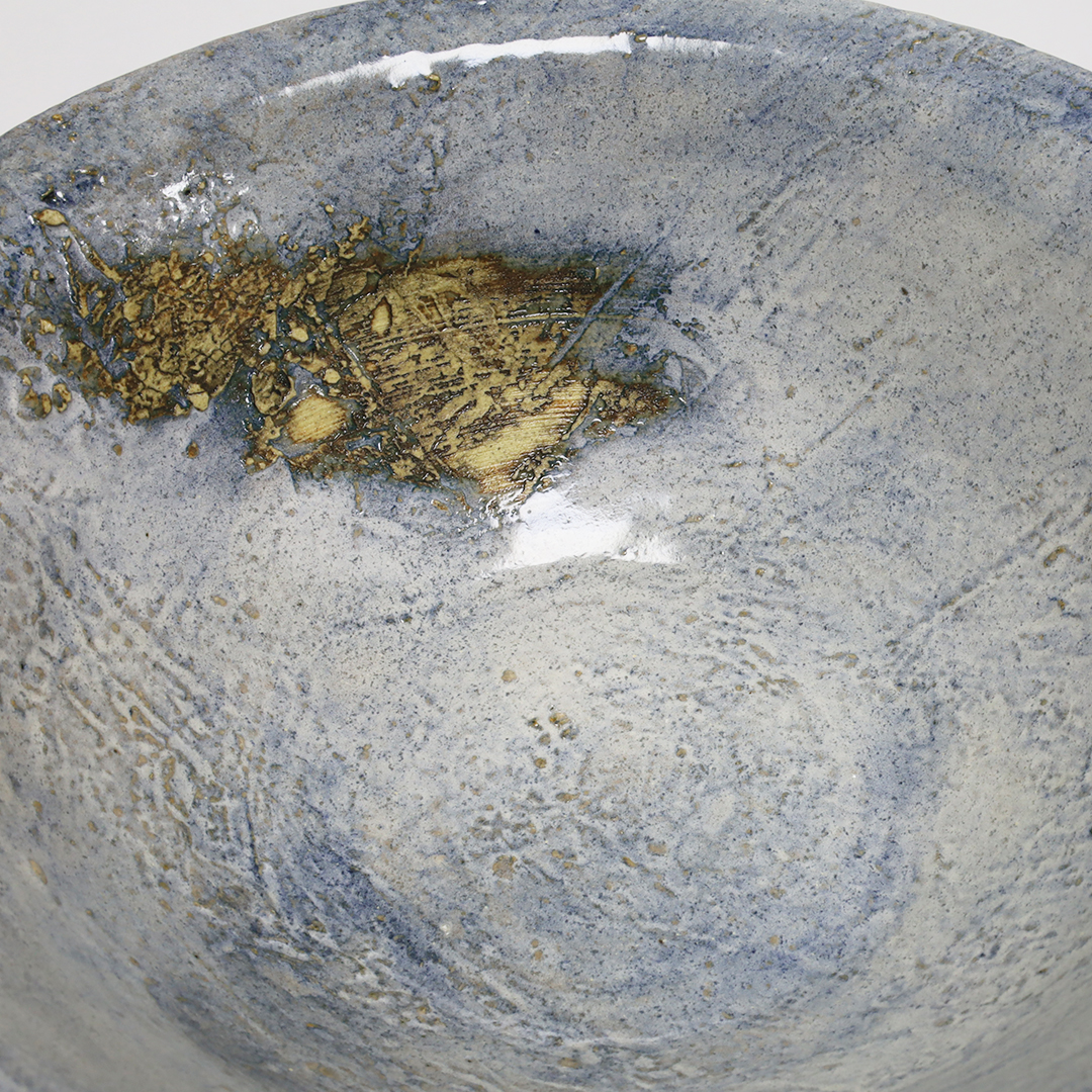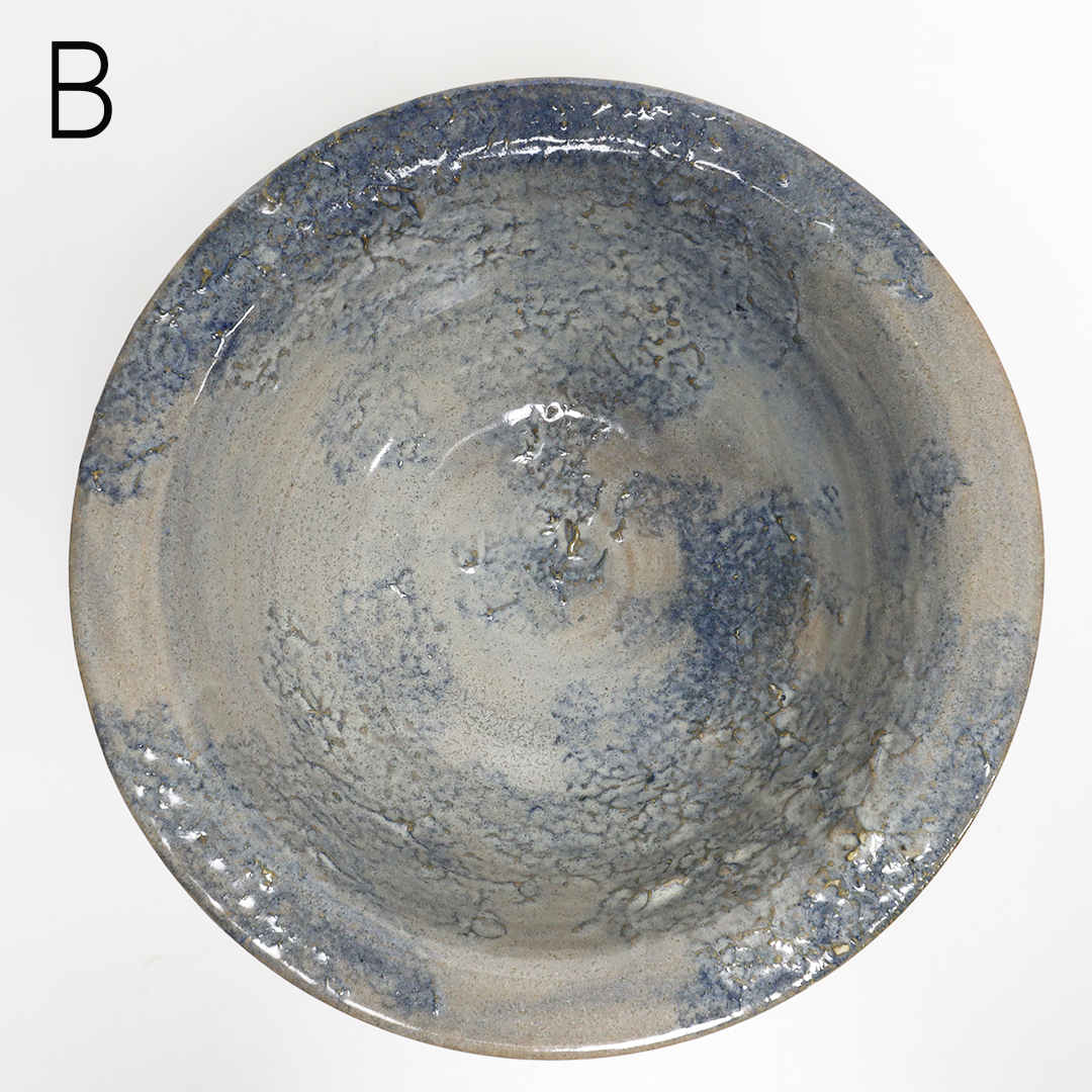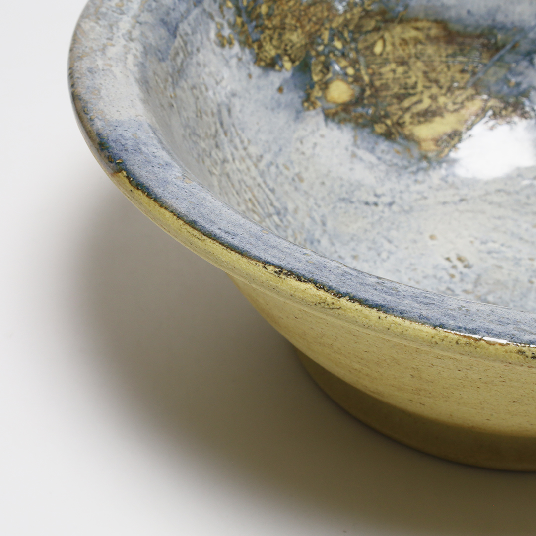 沖縄県読谷村で作陶されている作家です。特徴的なオリジナルのブルーの釉薬を使用しているので、沖縄の自然を感じる、シンプルなのに一度見たら忘れない印象に残る器です。厚みがあるので、しっかりした重みがあります。