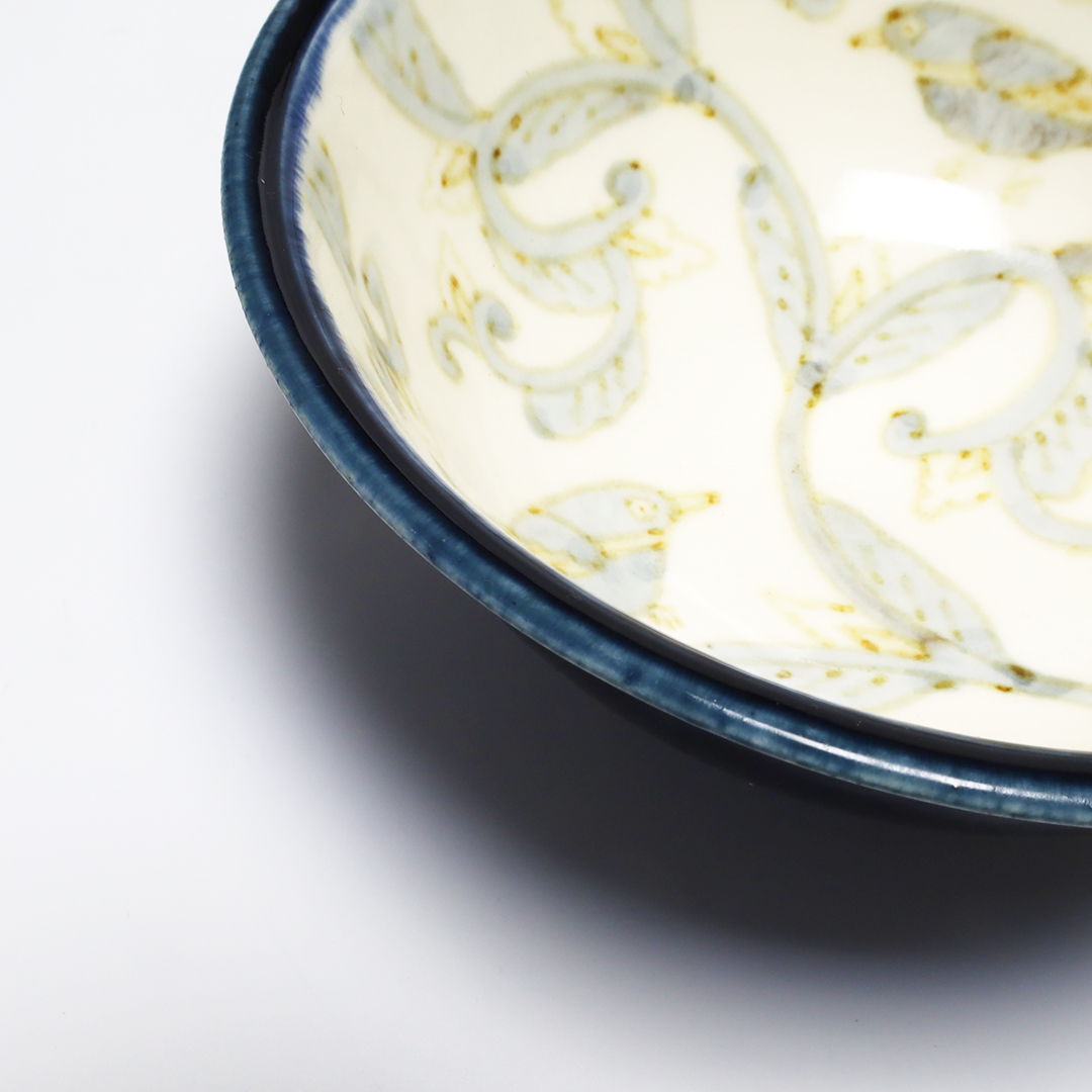 空想の鳥や花をモチーフにして絵付けされ、独特の世界観を作り上げています。