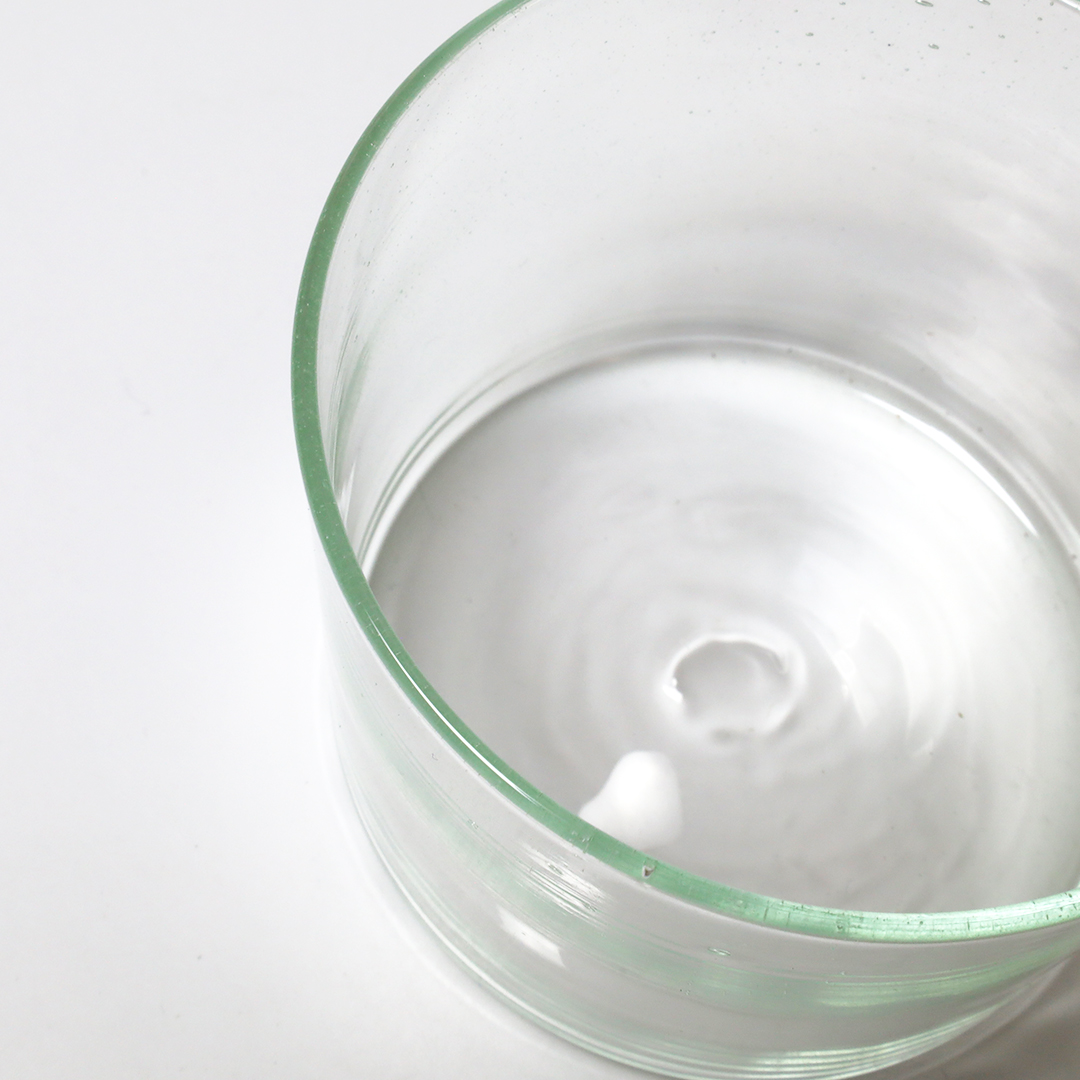 「自分が使いたいもの」を念頭に置き、主にコップなどの器を吹きガラスで、花器をサンドブラストの技法でガラス作品を作られています。