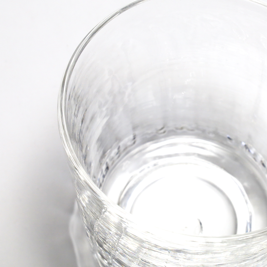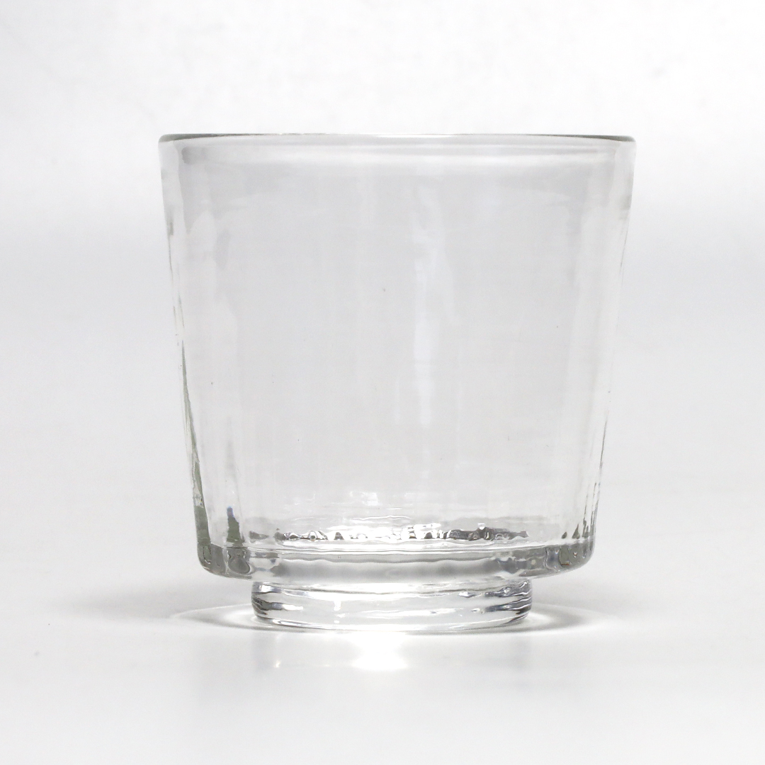 熔解炉(窯)を自作し、珪砂をはじめとした10数種類のガラス原料を選定・調合、吹く時に型を使うときは型を自作するなど、ガラスに関することはできる限り自分たちの手でおこなっています。、シンプルながら印象に残るテクスチャが光を受けて輝きます。