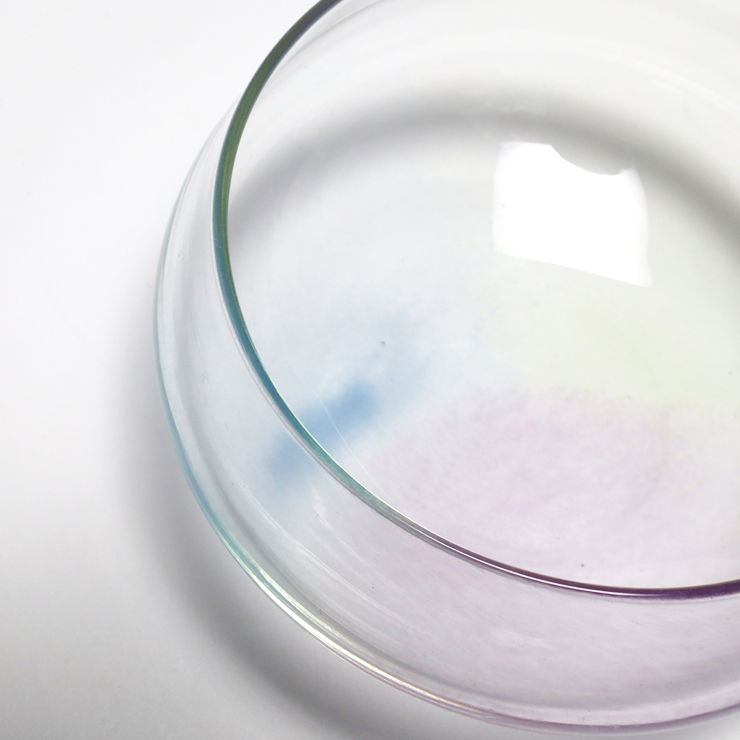 「触れることのできる記憶」をテーマに一瞬だけど一生心に残って輝いている記憶をガラスに重ね合わせ、日常の中で手に取って使った時や飾って眺めた時に、心の奥にあった大切な記憶を思い出し、心がじんわりと温まりほぐれていく「融点」になるようなものになればという思いを込めて制作しています。