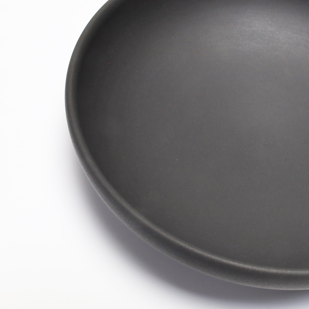 シャープで洗練されていながらも、柔らかみのある形状をしたうつわ。土の質感を生かした、なめらかな手触りの緋色のうつわを中心に制作しています。
