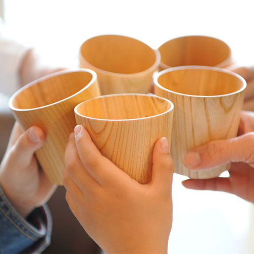 ケヤキの木で作った木のコップ。木で紙コップのようなコップが出来ないかと思い作りました。薄く挽くことで実現した軽量感と口当たりを是非体感してください。