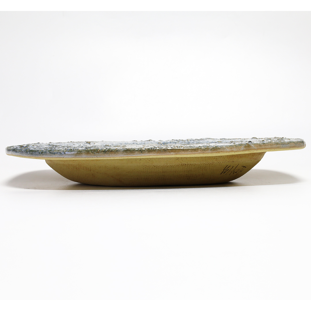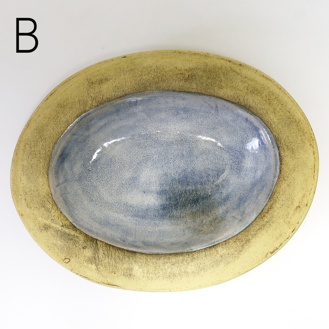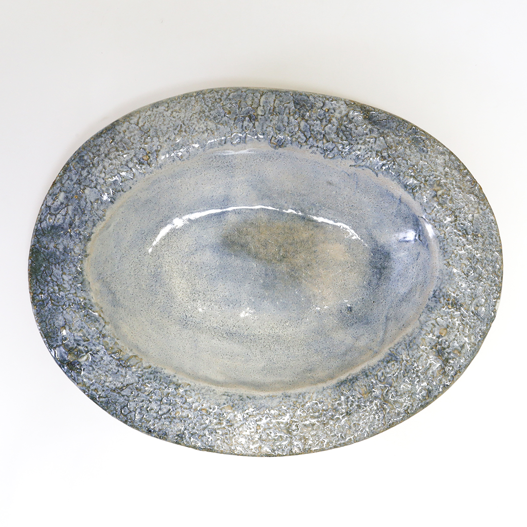 沖縄県読谷村で作陶されています。特徴的なオリジナルのブルーの釉薬を使用しているので、沖縄の自然を感じる、シンプルなのに一度見たら忘れない印象に残る器です。厚みがあるので、しっかりした重みがあります。