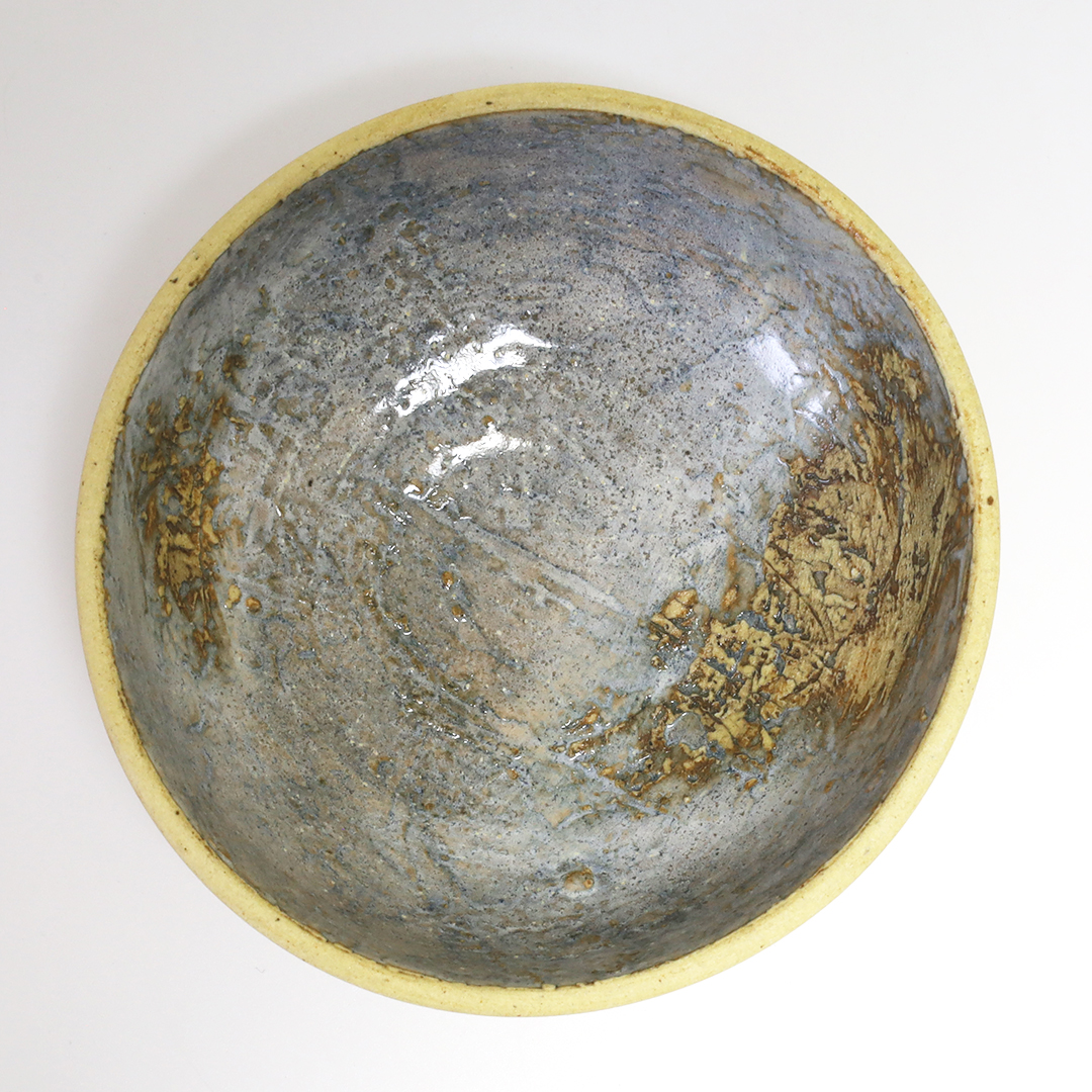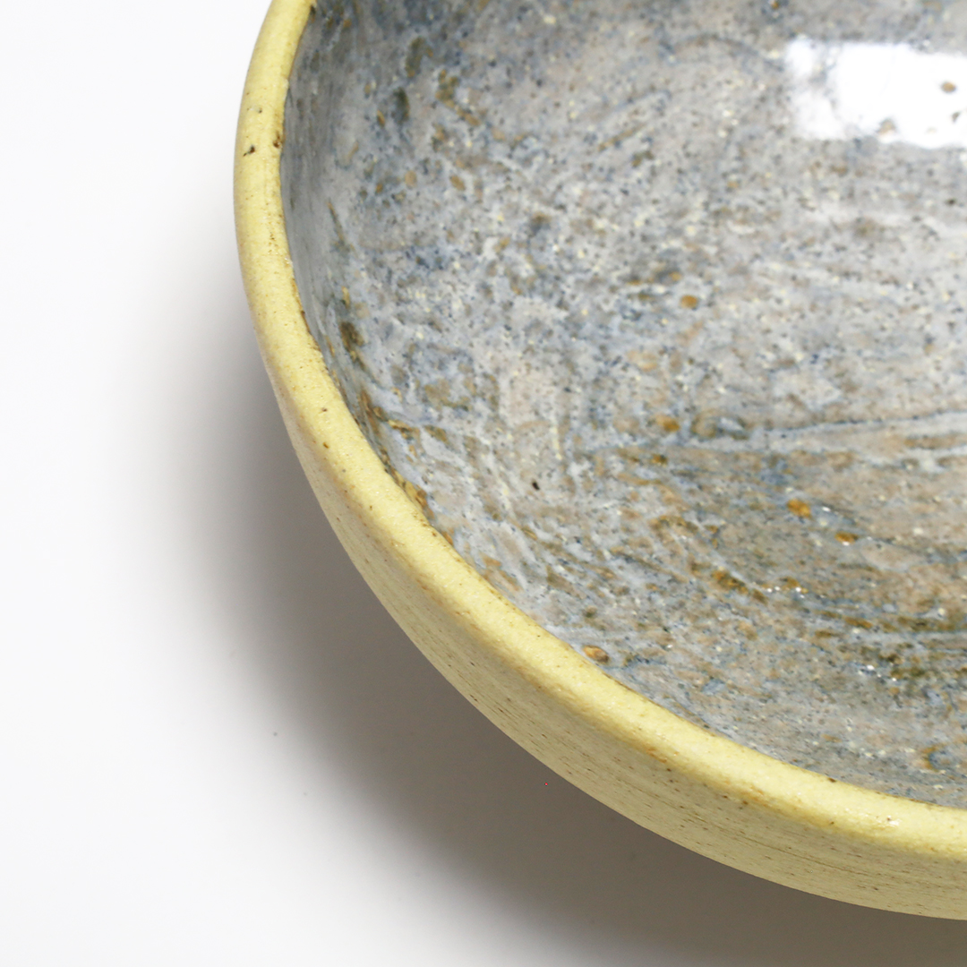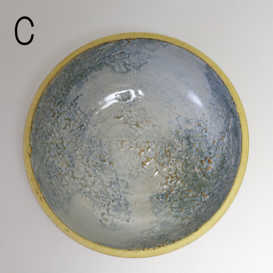 沖縄県読谷村で作陶されています。特徴的なオリジナルのブルーの釉薬を使用しているので、沖縄の自然を感じる、シンプルなのに一度見たら忘れない印象に残る器です。厚みがあるので、しっかりした重みがあります。
