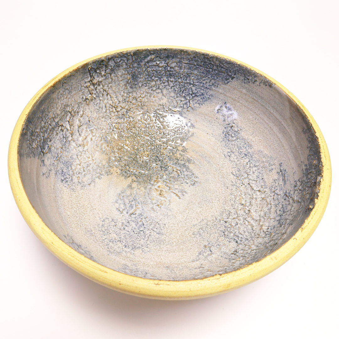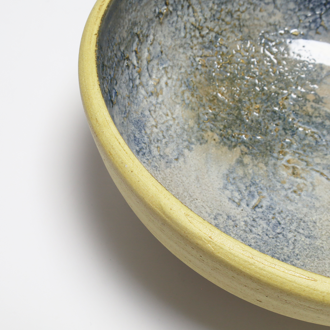 沖縄県読谷村で作陶されています。特徴的なオリジナルのブルーの釉薬を使用しているので、沖縄の自然を感じる、シンプルなのに一度見たら忘れない印象に残る器です。厚みがあるので、しっかりした重みがあります。