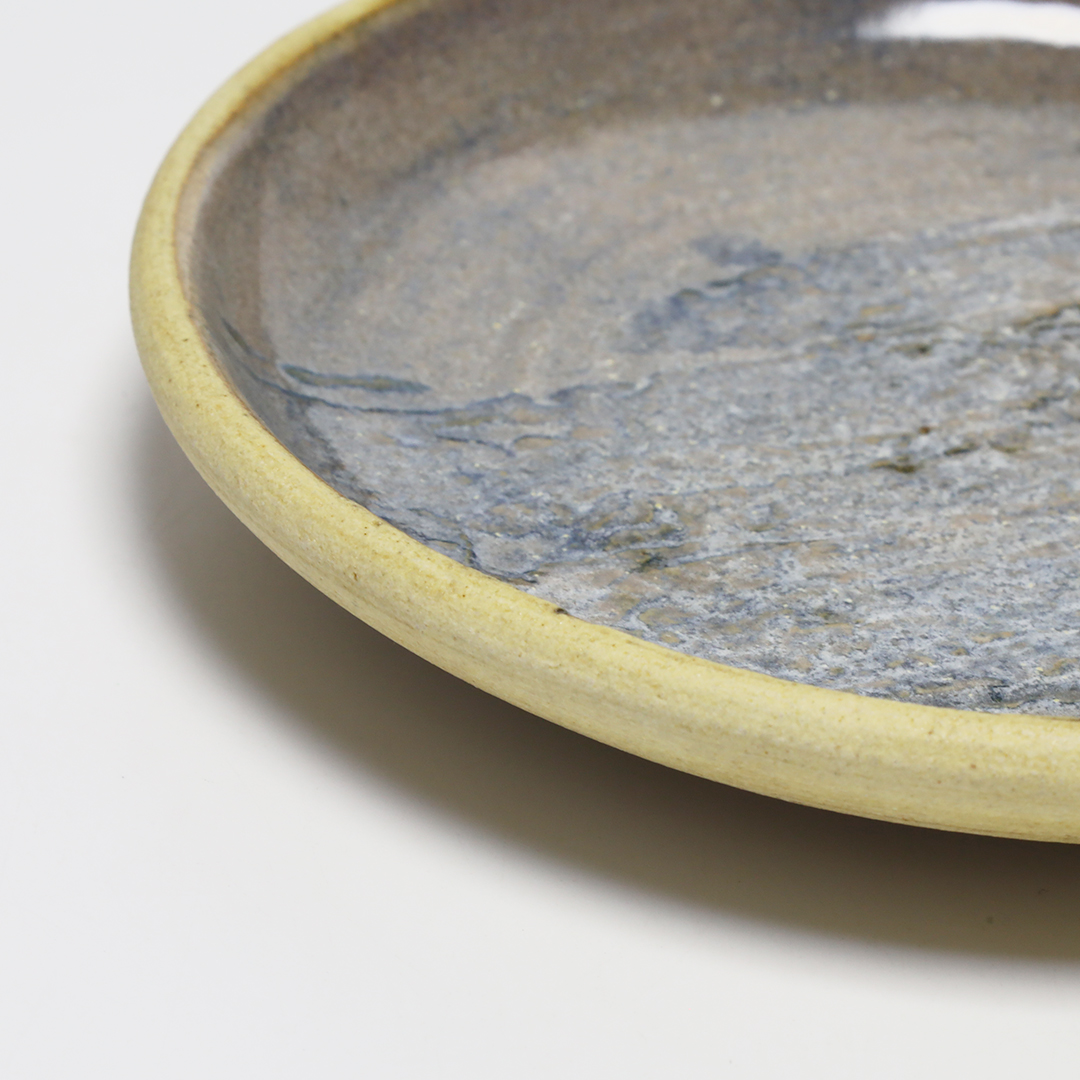 沖縄県読谷村で作陶されています。特徴的なオリジナルのブルーの釉薬を使用しているので、沖縄の自然を感じる、シンプルなのに一度見たら忘れない印象に残る器です。厚みがあるので、しっかりした重みがあります。