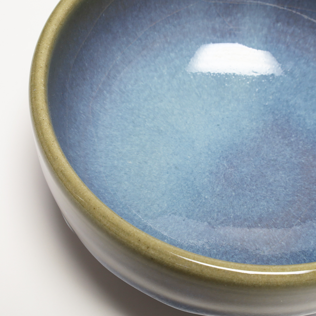 楢岡焼で使用する釉薬は主原料に白土を使っているため、全国的にも非常に珍しい青みと深みを有する海鼠釉となっています。