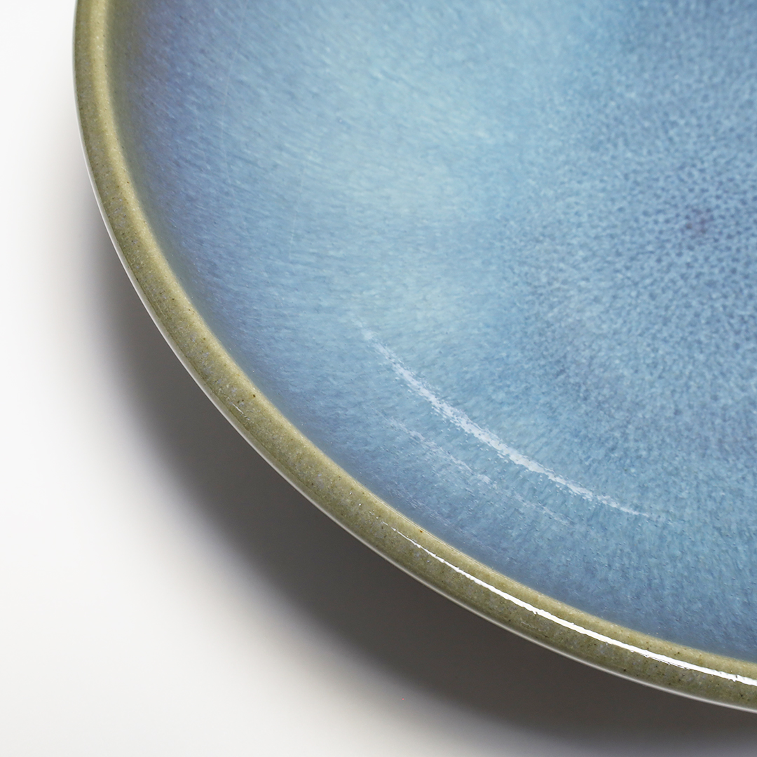 楢岡焼で使用する釉薬は主原料に白土を使っているため、全国的にも非常に珍しい青みと深みを有する海鼠釉となっています。