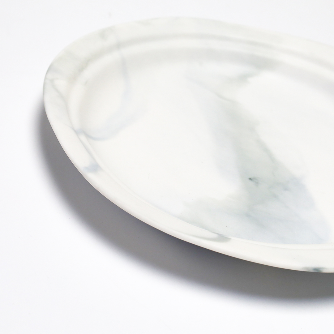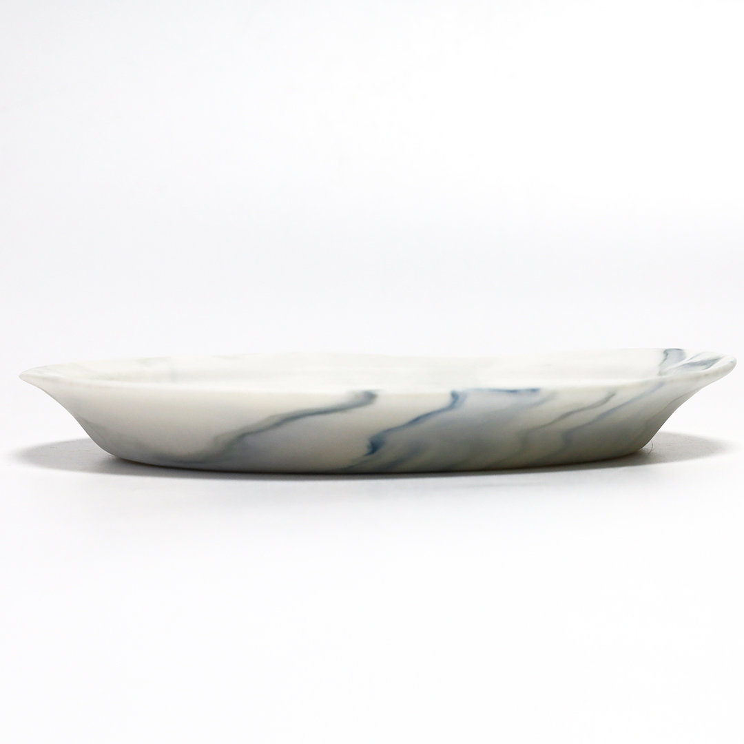従来の練り込みの技法に泥漿を組み合わせることで色と色が溶け合い、境界が曖昧になるような揺らぎのある模様が生まれます。透光性があり、光にかざすと仄かに透けるうつわです。