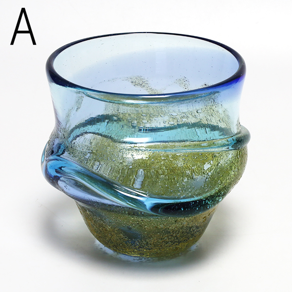宙吹きガラス工房 虹  茶泡波巻宙吹きグラス