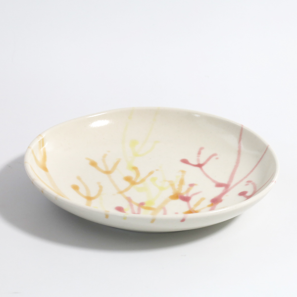 優しい色合いの花柄の器や、柔らかいフォルムで優しい表情の動物の花器や植木鉢などを制作しています。