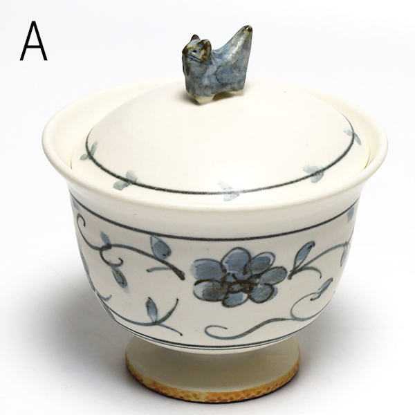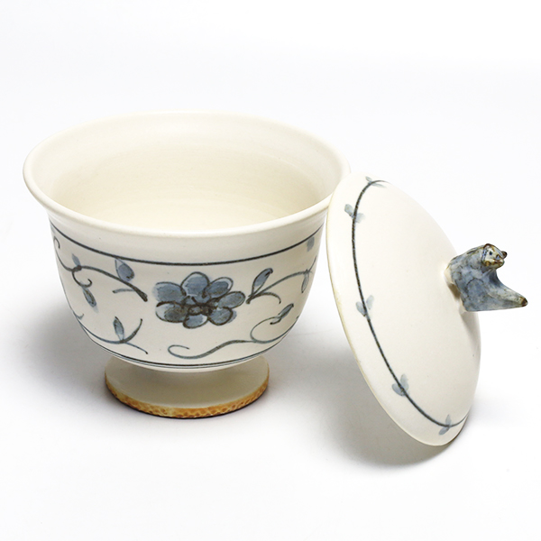 樋口萌 染付足付蓋碗