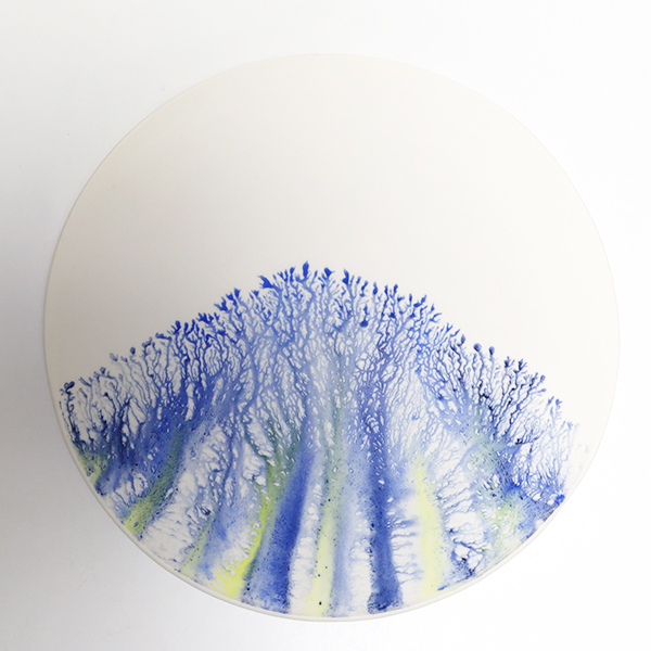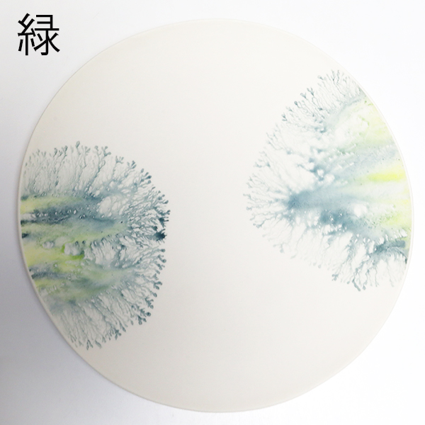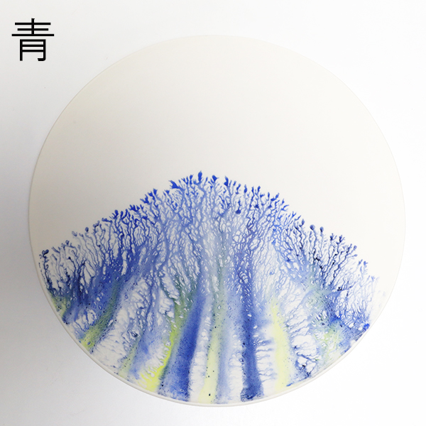 下絵具を3~4種類用いることで、透光性のある磁土に水彩画のようなグラデーションが溶けるようにして馴染みます。