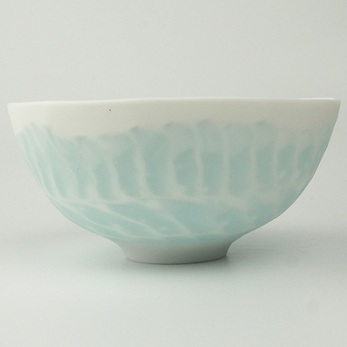 通常、磁器土に貝殻を混ぜると磁土と貝のカルシウムが反応して溶けて崩れてしまいますが、調合や焼き方を工夫することで器の形を保ち美しい作品が生まれます。