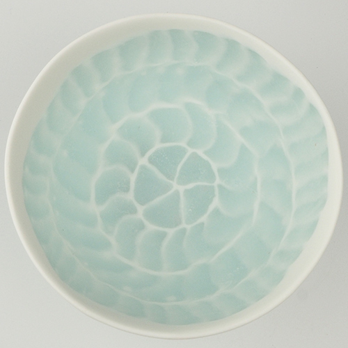 磁土に貝殻を混ぜてガラスのような透明感を生み出しています。