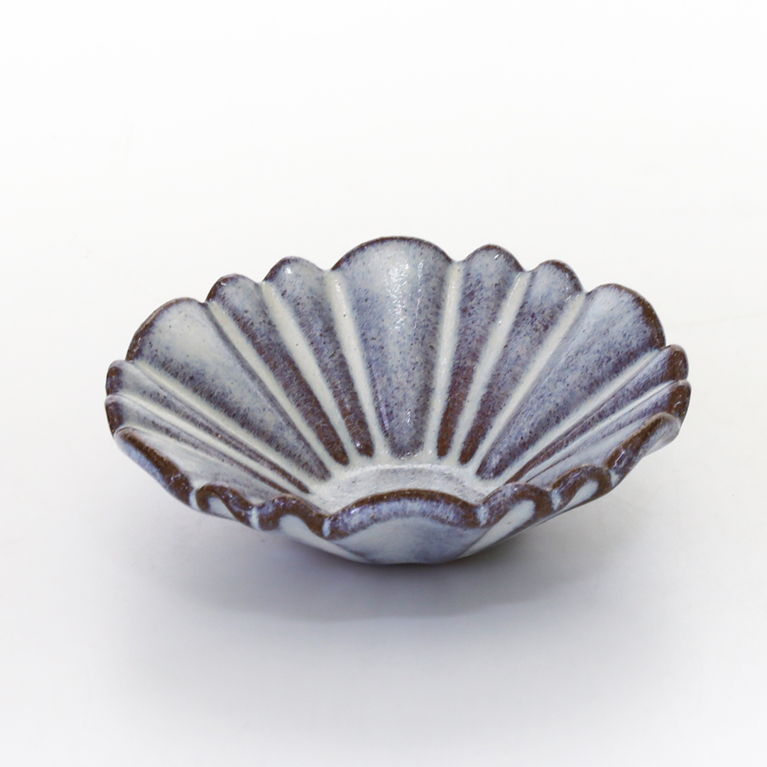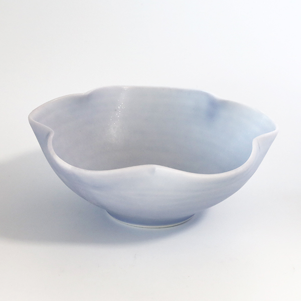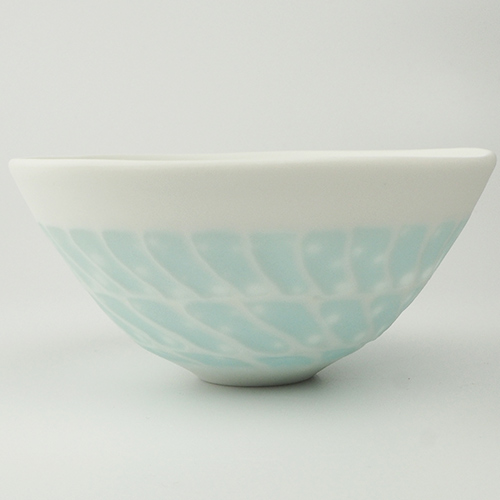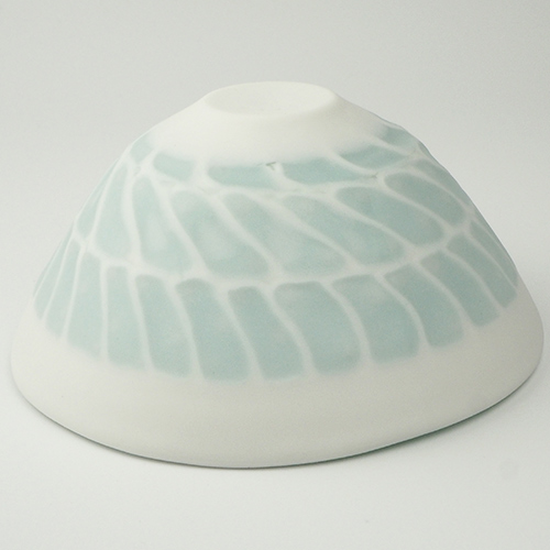 通常、磁器土に貝殻を混ぜると磁土と貝のカルシウムが反応して溶けて崩れてしまいますが、調合や焼き方を工夫することで器の形を保ち美しい作品が生まれます。
