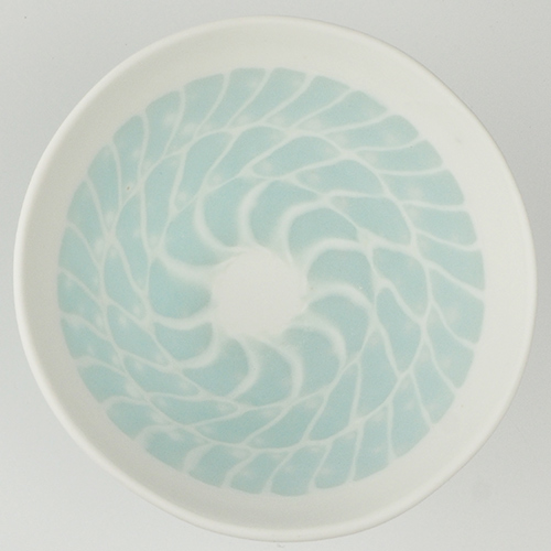 磁土に貝殻を混ぜてガラスのような透明感を生み出しています。