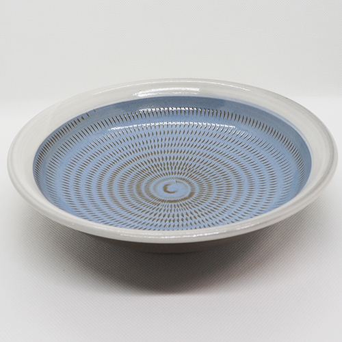 小石原焼 早川窯 七寸深皿 飛鉋 青