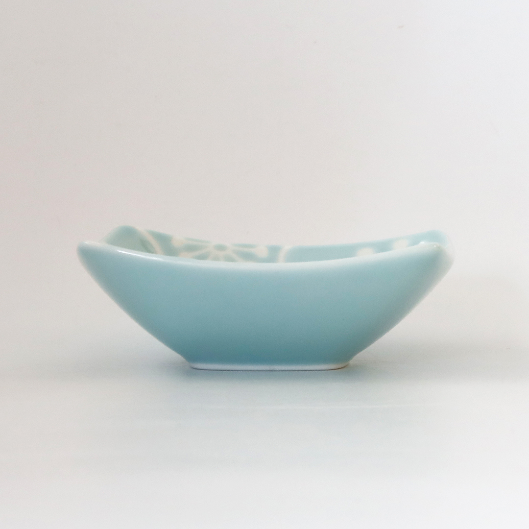 撥水の技法でレリーフのように浮き出た大柄、スクエアのフォルムからは、品性と愛嬌を感じられる。