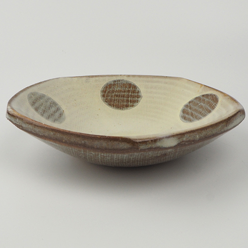 小石原焼の伝統技法である飛鉋を用いながら、水玉等の模様を組み合わせて、親しみのあるデザインに仕上げているのが特徴です。