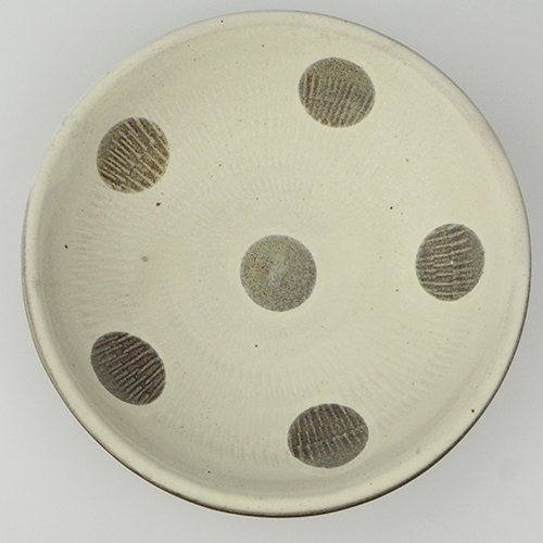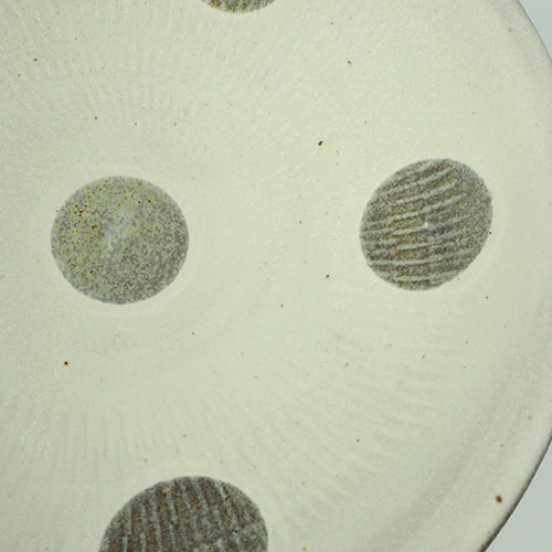 小石原焼の伝統技法である飛鉋を用いながら、水玉等の模様を組み合わせて、親しみのあるデザインに仕上げているのが特徴です。