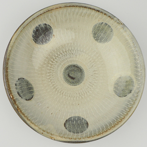 小石原焼の伝統技法である飛鉋を用いながら、水玉等の模様を組み合わせて、親しみのあるデザインに仕上げているのが特徴です。