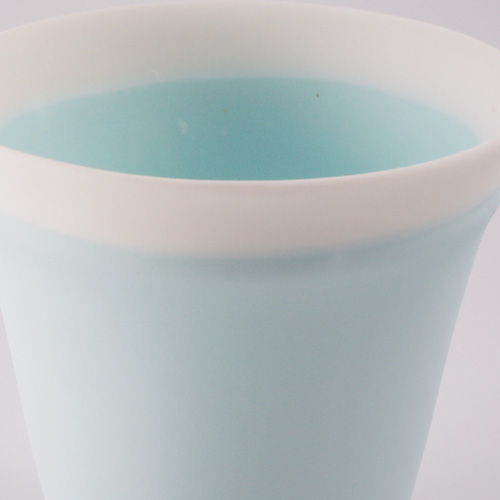 磁土に貝殻を混ぜてガラスのような透明感を生み出しています。