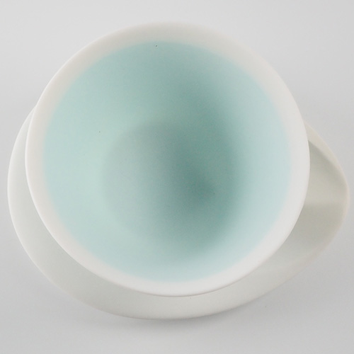 通常、磁器土に貝殻を混ぜると磁土と貝のカルシウムが反応して溶けて崩れてしまいますが、調合や焼き方を工夫することで器の形を保ち美しい作品が生まれます。
