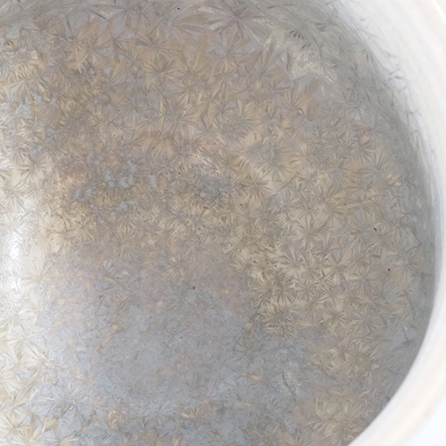 温度コントロールが難しい技法で、長時間焼きすぎると結晶紋様が消失してしまう。