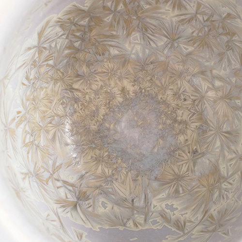 温度コントロールが難しい技法で、長時間焼きすぎると結晶紋様が消失してしまう。