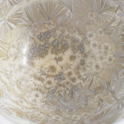 温度コントロールが難しい技法で、長時間焼きすぎると結晶紋様が消失してしまう。