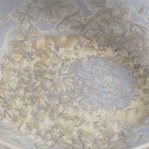 温度コントロールが難しい技法で、長時間焼きすぎると結晶紋様が消失してしまう。