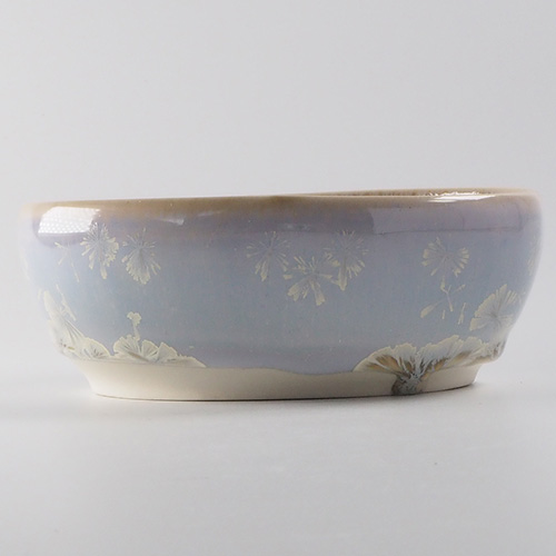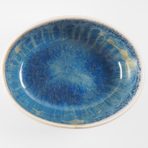 本間友幸 雪の華 亜鉛結晶釉 楕円鉢 (青)