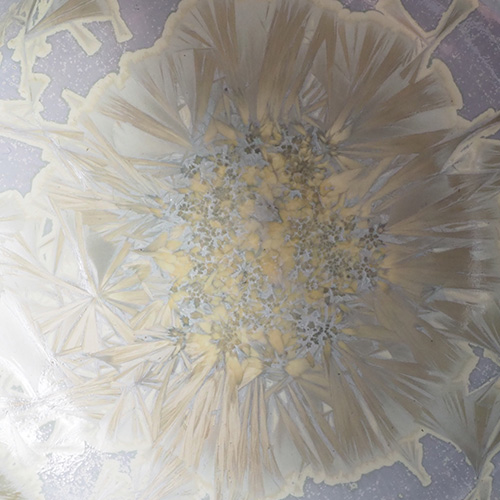 温度コントロールが難しい技法で、長時間焼きすぎると結晶紋様が消失してしまう。