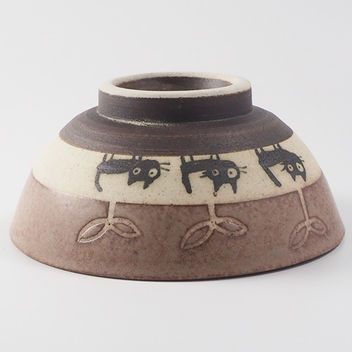 美濃焼 伸光窯 黒ネコのさんぽ ご飯茶碗 ブラウン