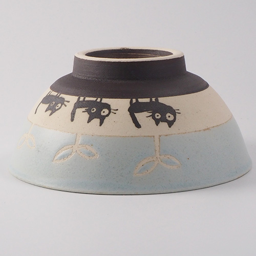 美濃焼 伸光窯 黒ネコのさんぽ ご飯茶碗 ブルー