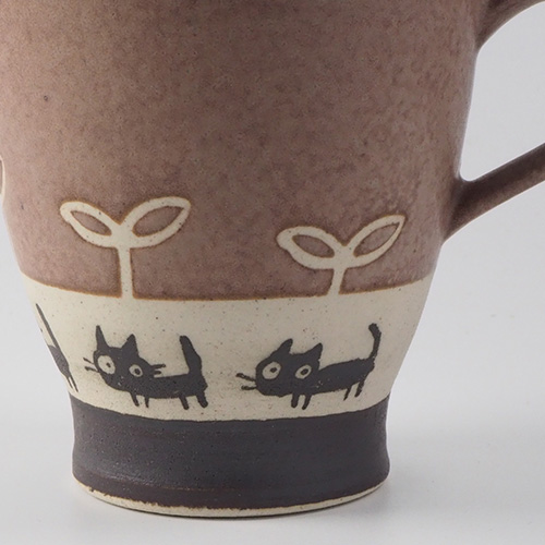 美濃焼 伸光窯 黒ネコのさんぽ マグカップ ブラウン