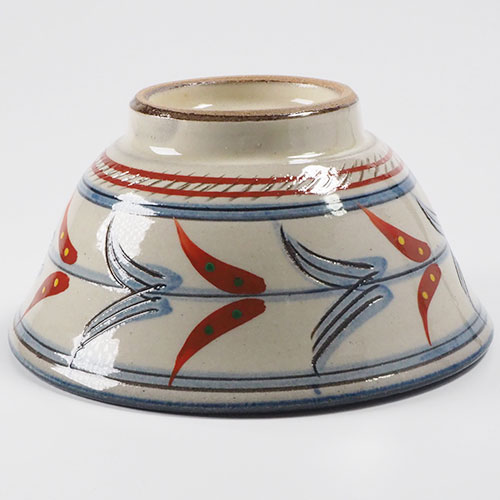 やちむん(琉球焼き) 陶眞窯 飯碗 4寸 赤絵クシ目