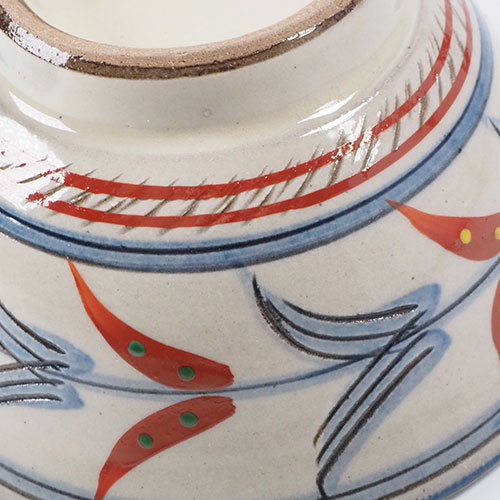 クリームがかった白地に、青と赤のコントラストが印象的で、食卓に華をそえてくれそうです。