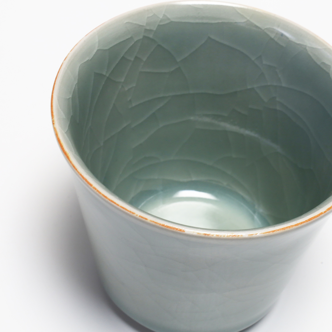 美しい貫入が入った青磁のカップ。