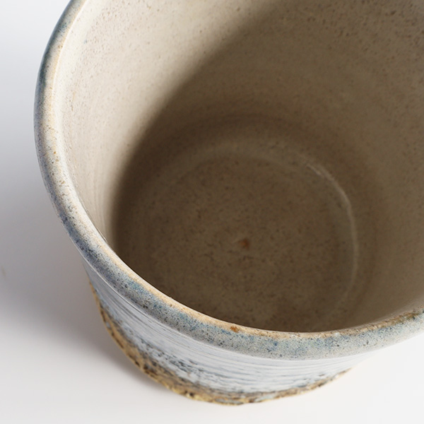 沖縄県読谷村で作陶されている作家です。特徴的なオリジナルのブルーの釉薬を使用しているので、沖縄の自然を感じる、シンプルなのに一度見たら忘れない印象に残る器です。厚みがあるので、しっかりした重みがあります。