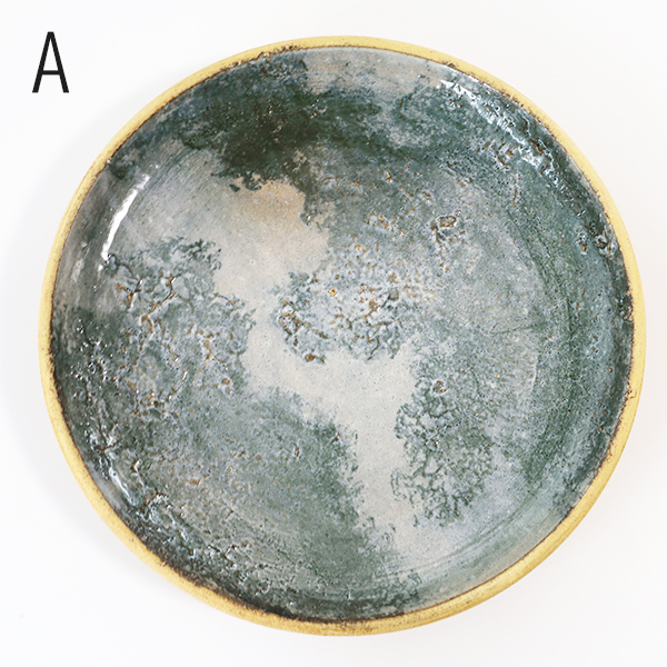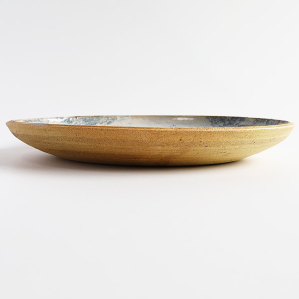 沖縄県読谷村で作陶されている作家です。特徴的なオリジナルのブルーの釉薬を使用しているので、沖縄の自然を感じる、シンプルなのに一度見たら忘れない印象に残る器です。厚みがあるので、しっかりした重みがあります。