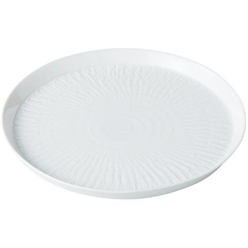 波佐見焼 一真陶苑 彫刻紋(白磁) 丸皿 カンナ彫・小