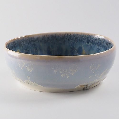 本間友幸 雪の華 亜鉛結晶釉 楕円鉢 (青)