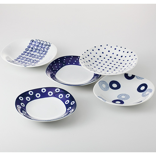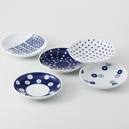 波佐見焼 西海陶器 藍丸紋 軽量取皿揃