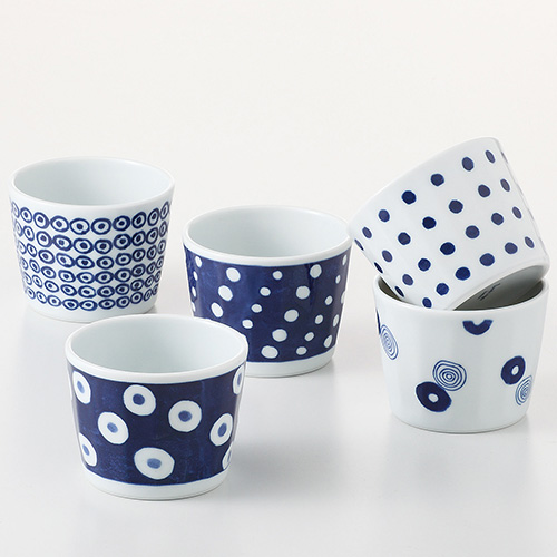 波佐見焼 西海陶器 藍丸紋 軽量カップ揃