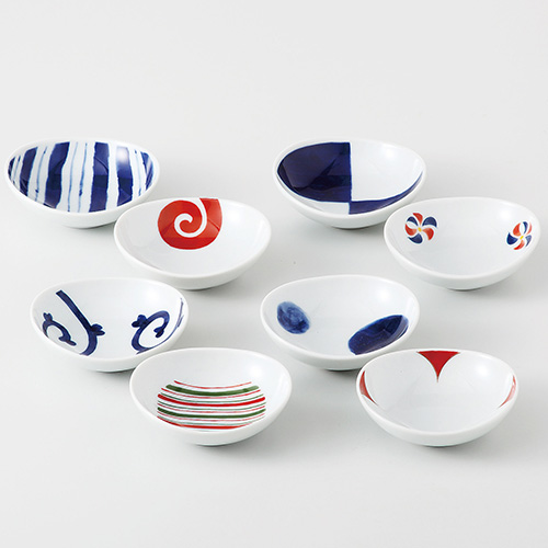 波佐見焼 西海陶器 染錦絵変り 末広珍味揃 8枚セット