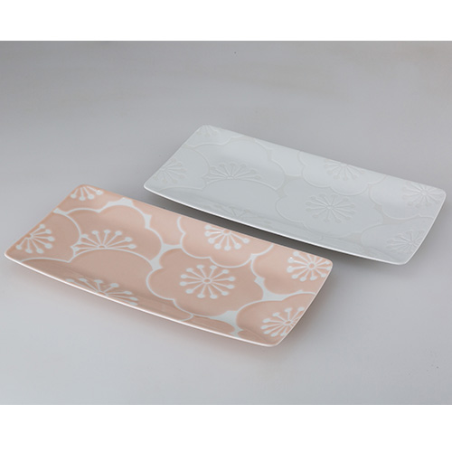 波佐見焼 西海陶器 はふり 長角 皿ペア 桃白