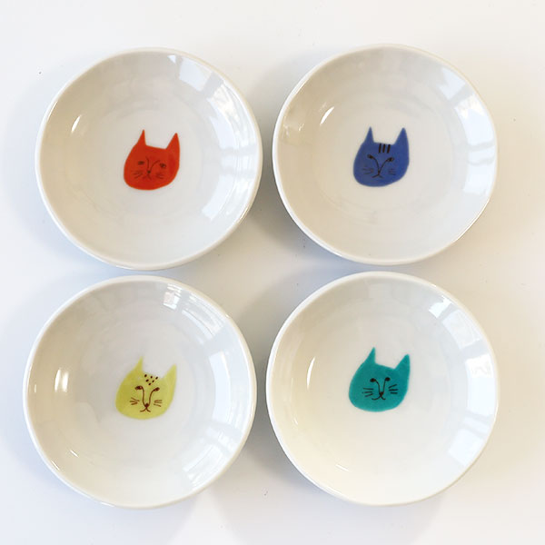 九谷焼 ハレクタニ ネコ豆皿 4pcsセット(化粧箱入り)